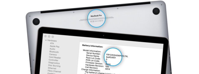 Ο Mac σας παρέχει διάφορα εργαλεία που θα σας βοηθήσουν να το αναγνωρίσετε. Χρησιμοποιήστε τον Σειριακό Αριθμό, τον Αριθμό Μοντέλου, τον Αναγνωριστικό Μοντέλου (Model ID) και τον Αριθμό EMC για να προσδιορίσετε ποιο μοντέλο MacBook Air/MacBook Pro έχετε.