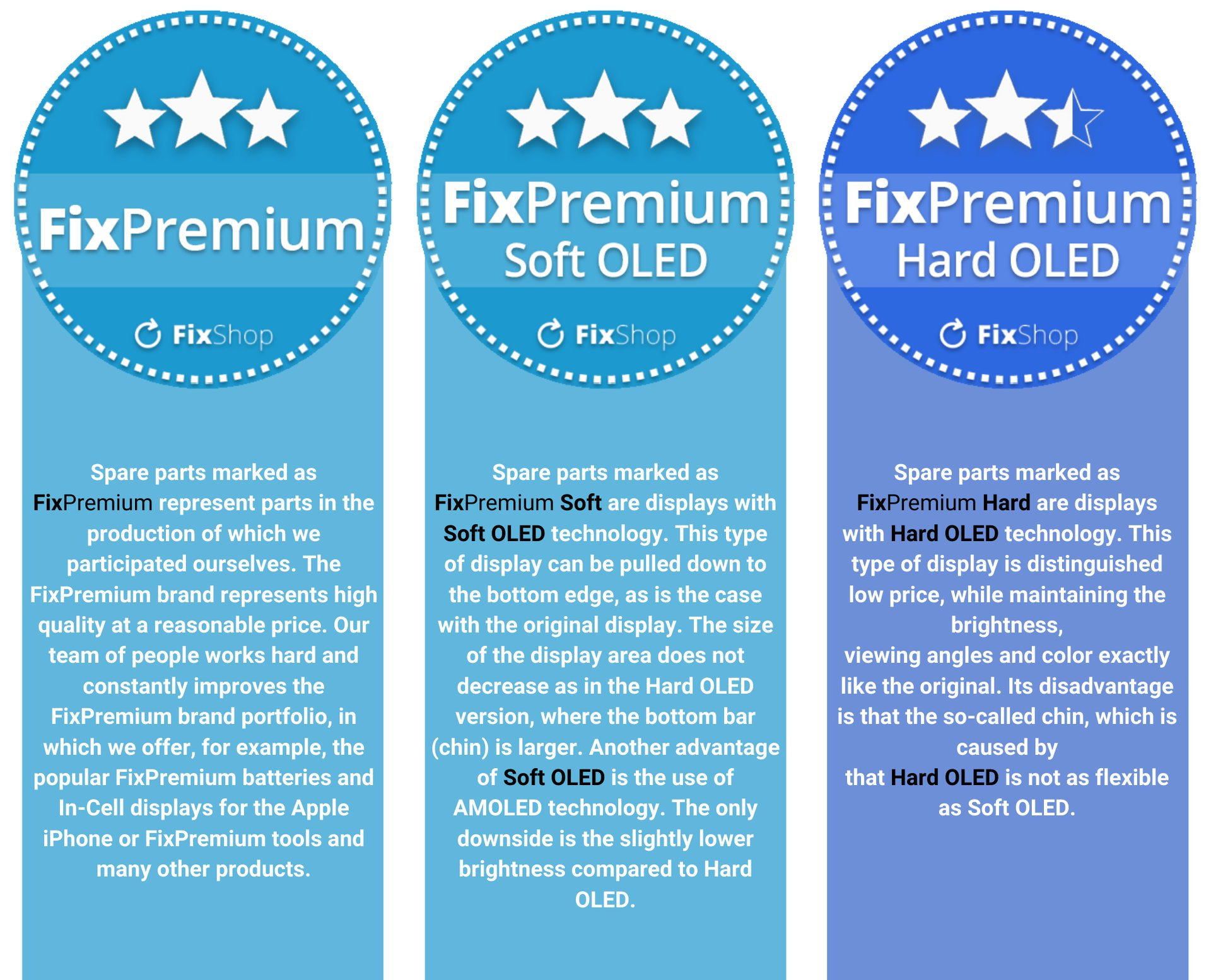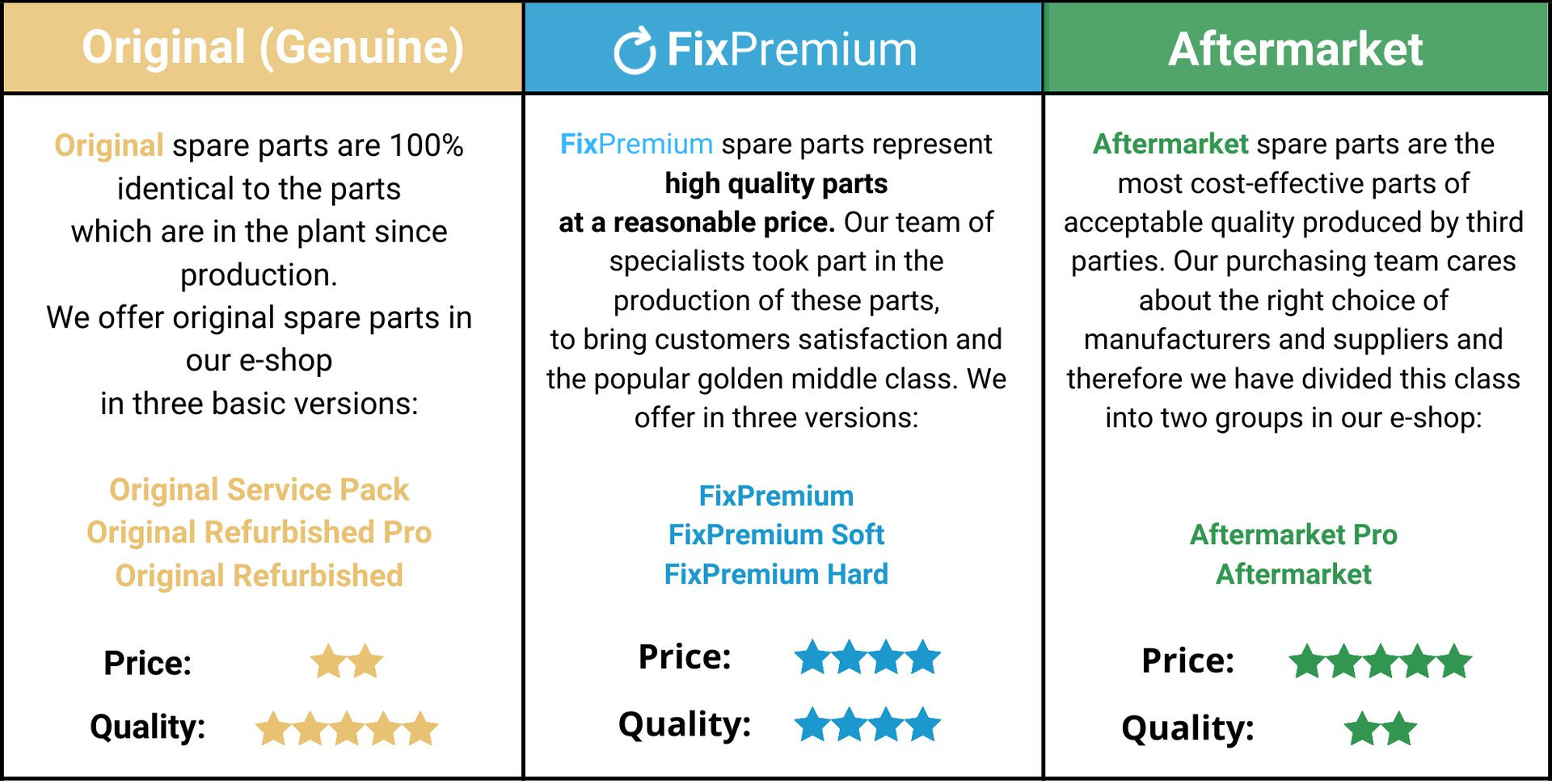 For FixPremium spare parts, we work with 3 groups of category divisions: FixPremium, FixPremium Soft and FixPremium Hard